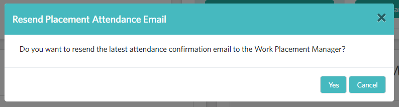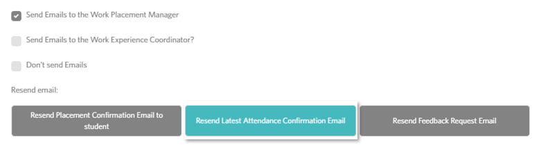 - 'Send Emails to the Work Placement Manager': Selecting this option means you want to resend the attendance emails to the employer contact listed above.