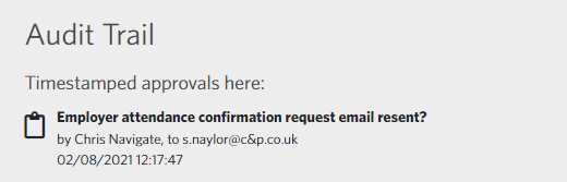 9. The email has now been resent to the recipient selected. This is evidenced in the audit trail on the placement record.