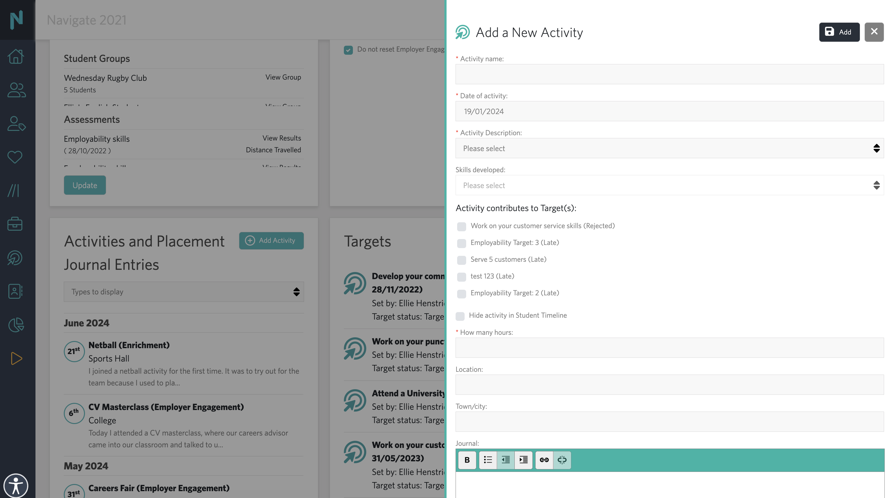 3. You can then add employer engagement and enrichment activities against this individual student by clicking on Add Activity and filling out the form that appears.